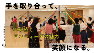 フォークダンスクラブ「アンティーズ」47年続く歴史ある団体です。華やかな衣装を身にまとった約50名の皆さんが、軽快な音楽に合わせて笑顔で踊る様子は、まるでアニメの世界のような華やかさでした。