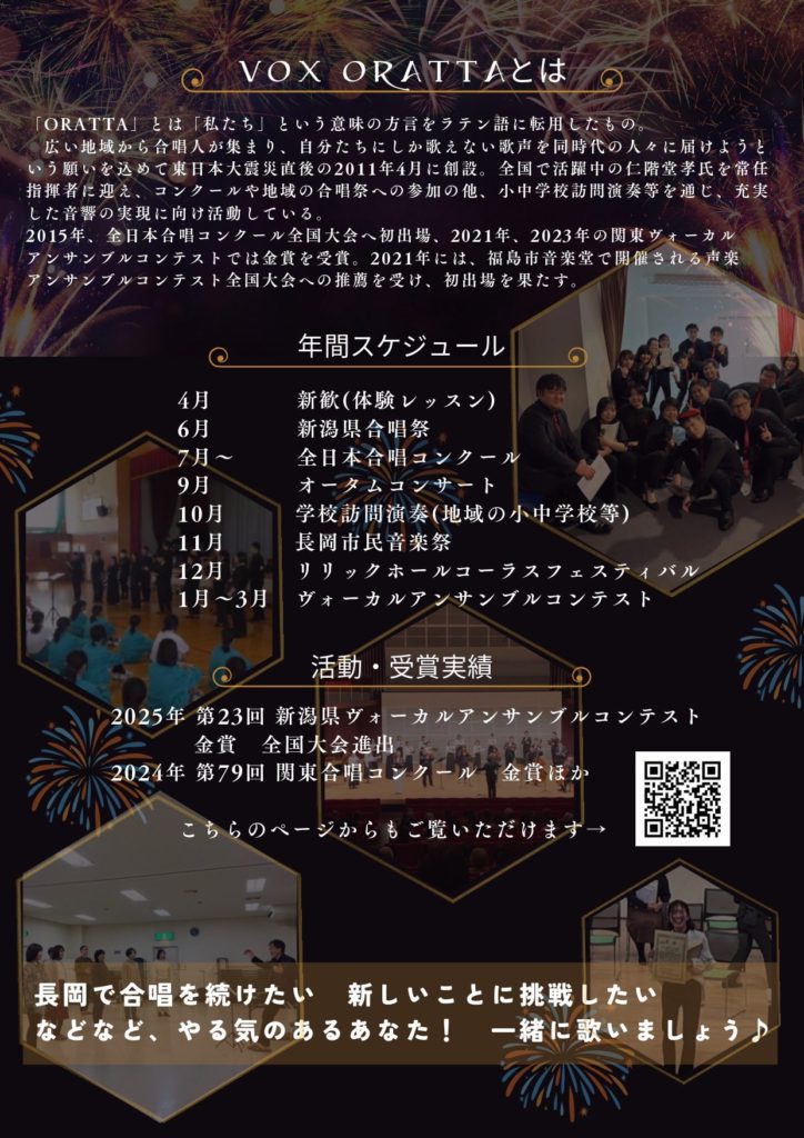 | 名称 | 越の国室内合唱団 VOX ORATTA 団員募集 |