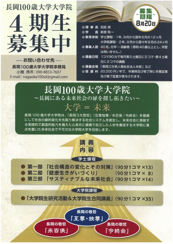| 名称 | 【4期生募集中】長岡100歳大学大学院 |