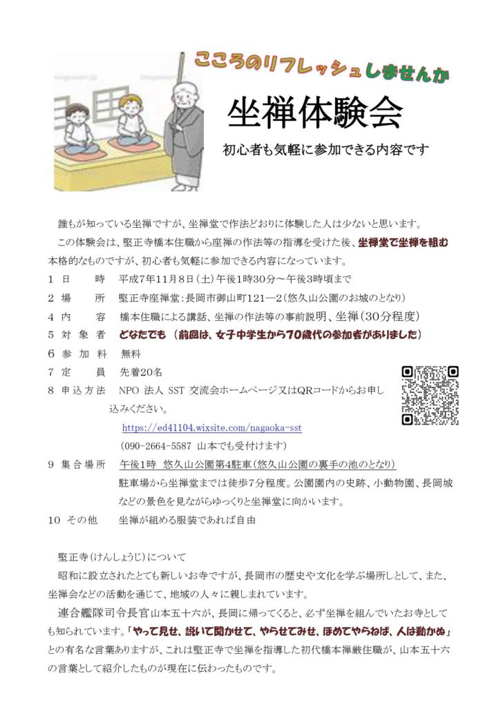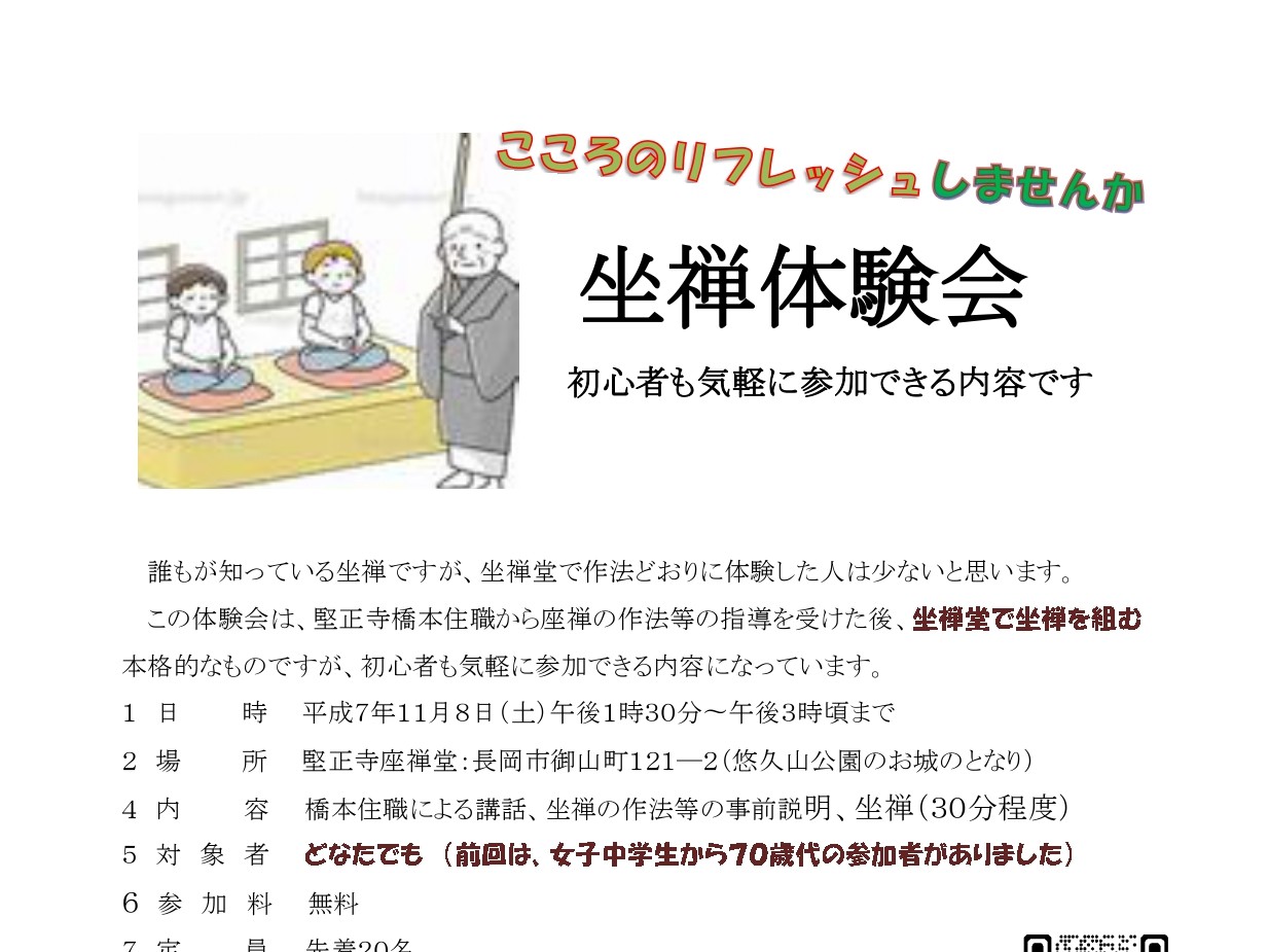 | 場所 | 堅正寺座禅堂(長岡市御山町121-2) |