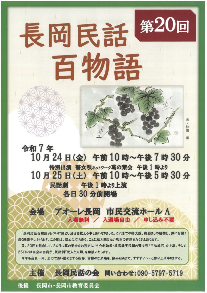 お問い合わせ先 | 長岡民話の会 TEL 090-7411-6379 |
