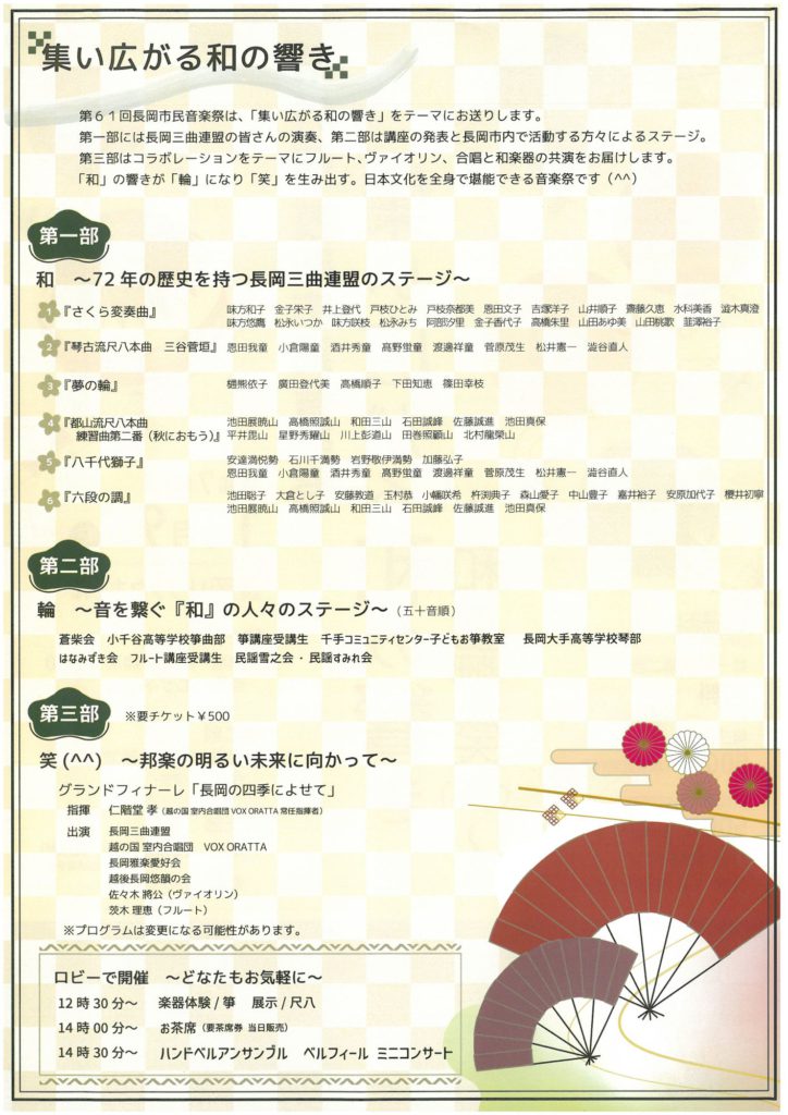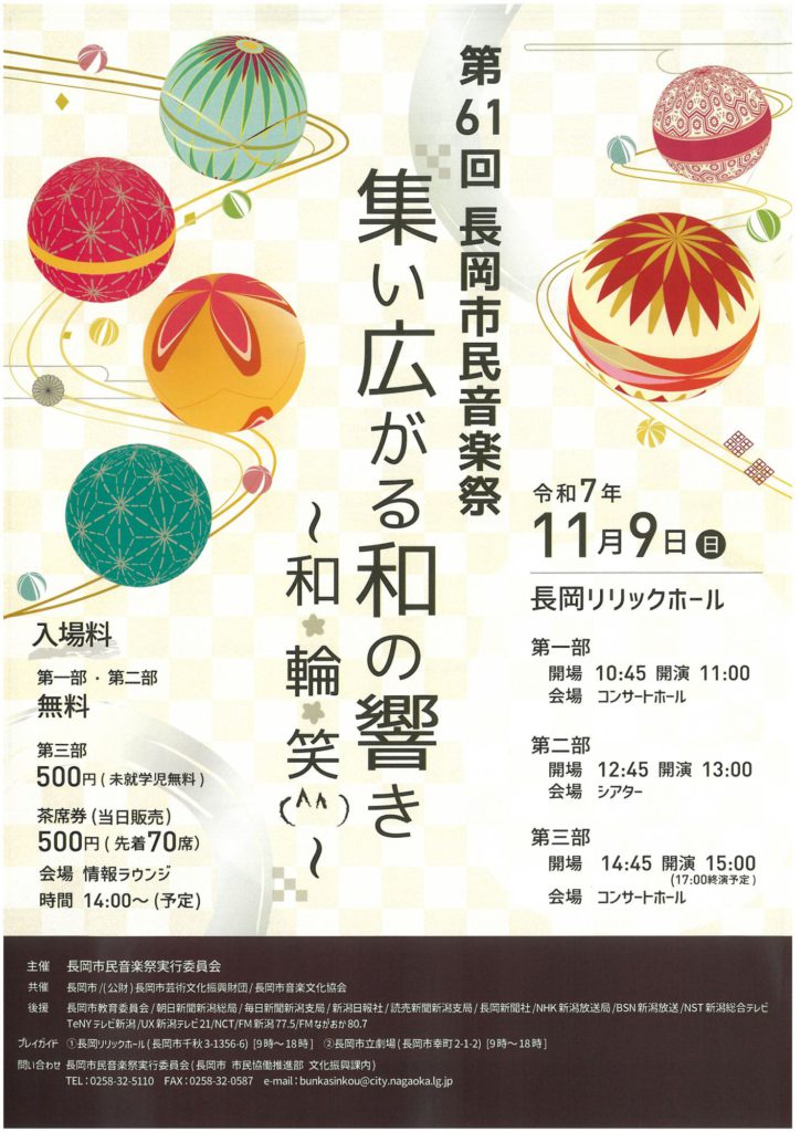 イベント名 | 第61回長岡市民音楽祭 集い広がる輪の響 ~和 輪 笑(^^)~ |