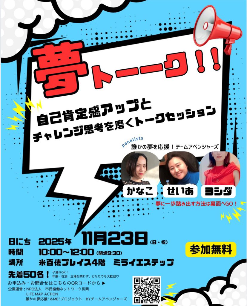 | イベント名 | 夢トーーク!~自己肯定感アップとチャレンジ思考を磨くトークセッション~ |