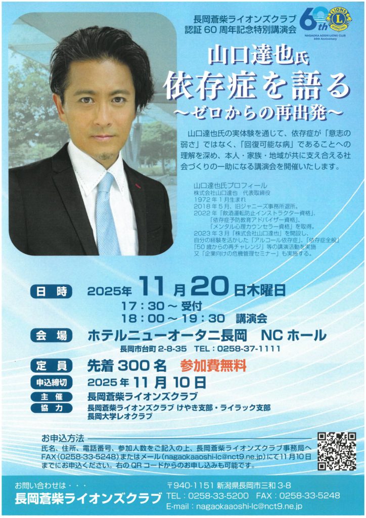 長岡蒼柴ライオンズクラブ認証60周年記念の特別講演会です。