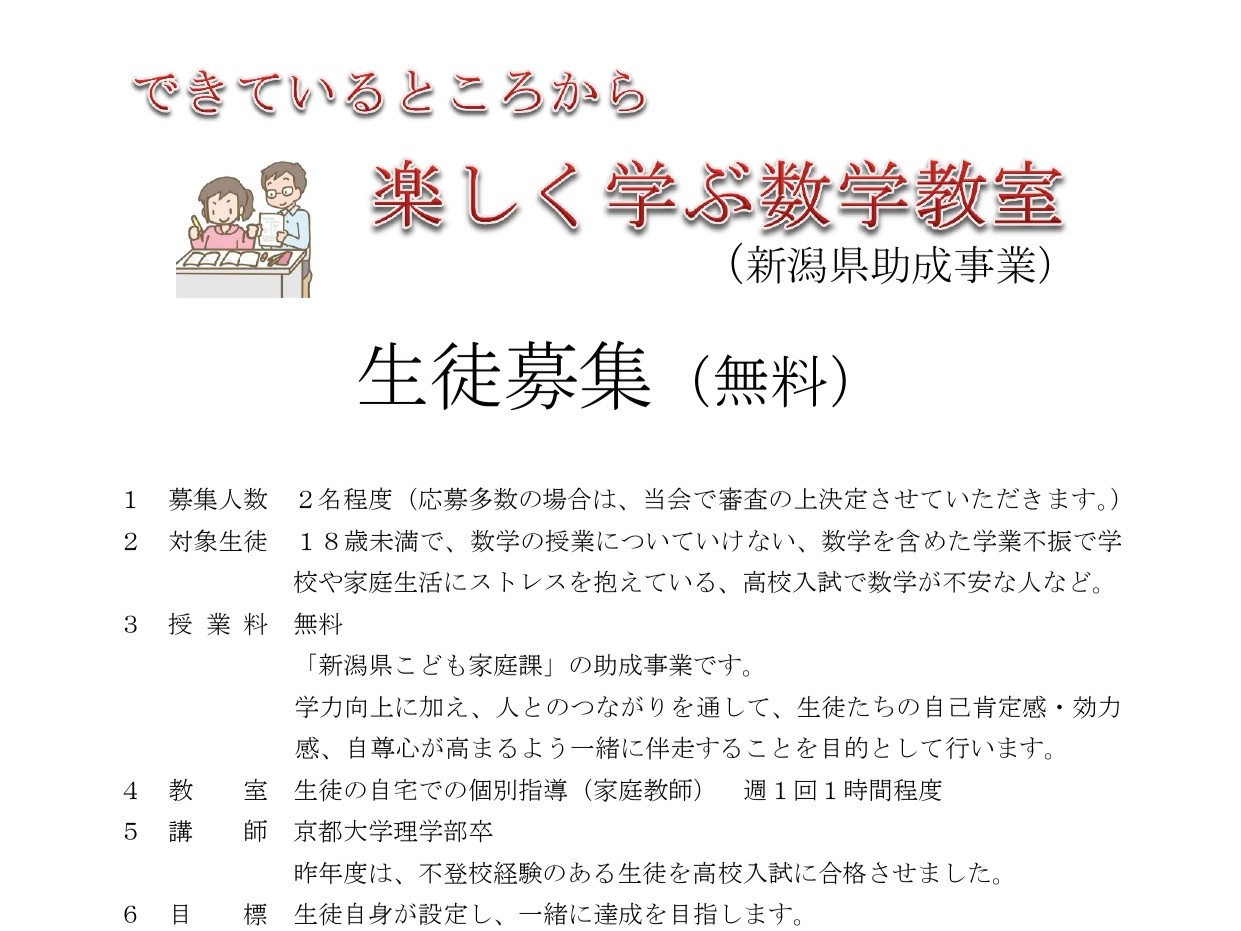 新潟県助成事業。2名程度の募集です。