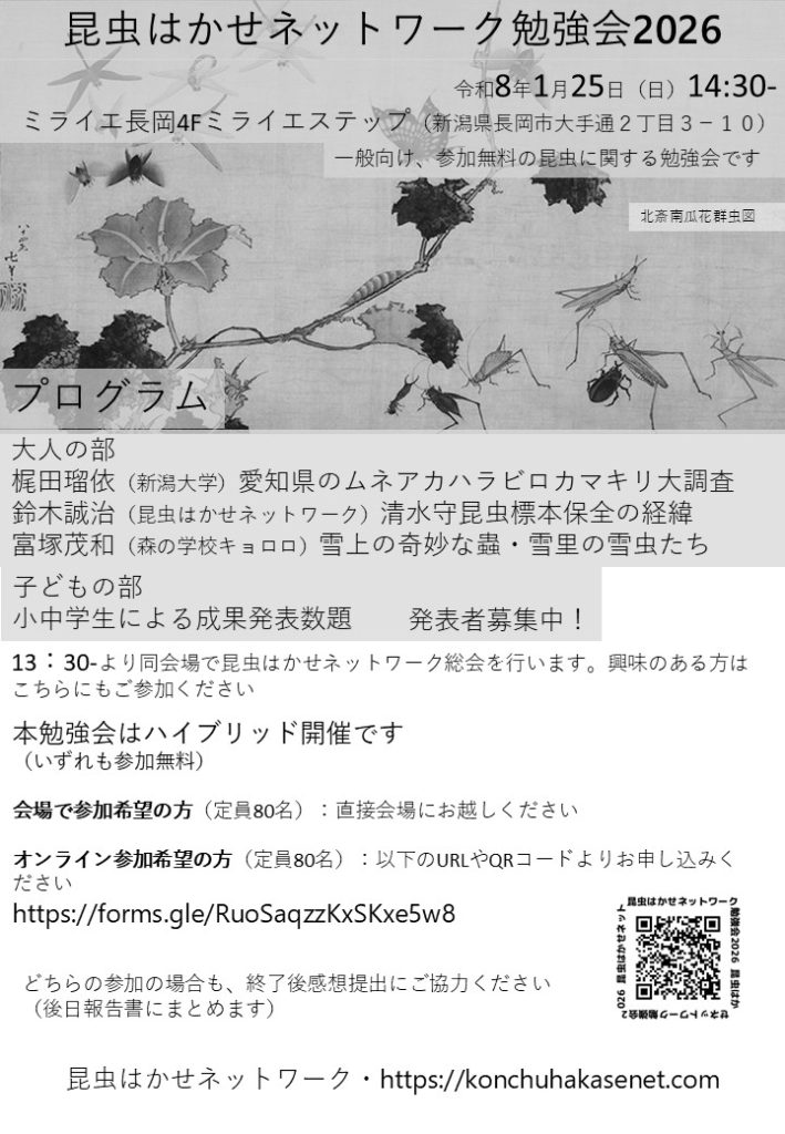 | イベント名 | 昆虫はかせネットワーク勉強会2026 |