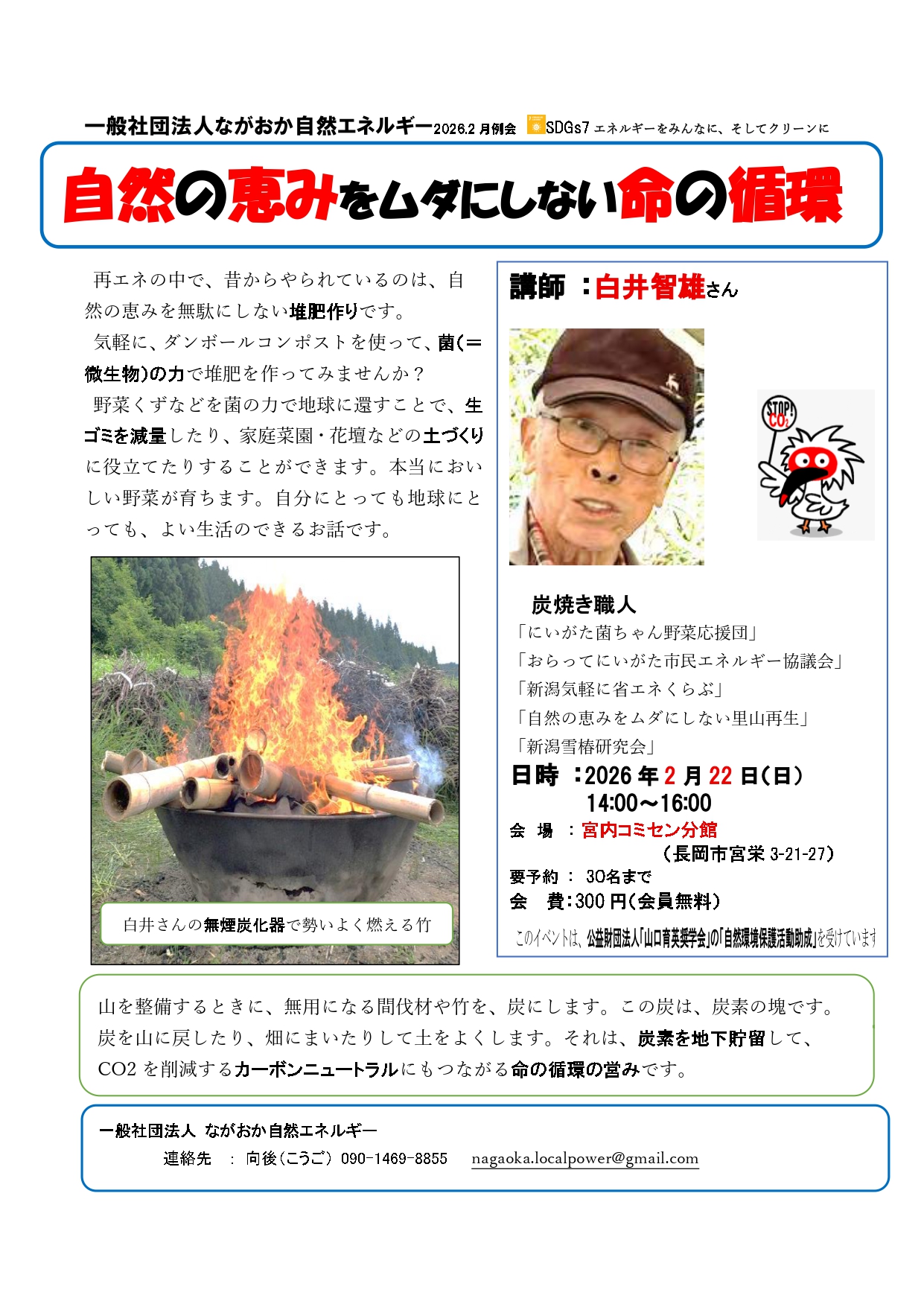| 主催者 | 一般社団法人ながおか自然エネルギー |