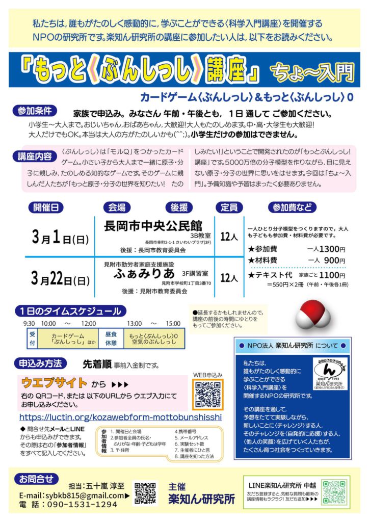 | イベント名 | はじめての原子論入門教育「もっとぶんしっし講座」ちょ~入門 |