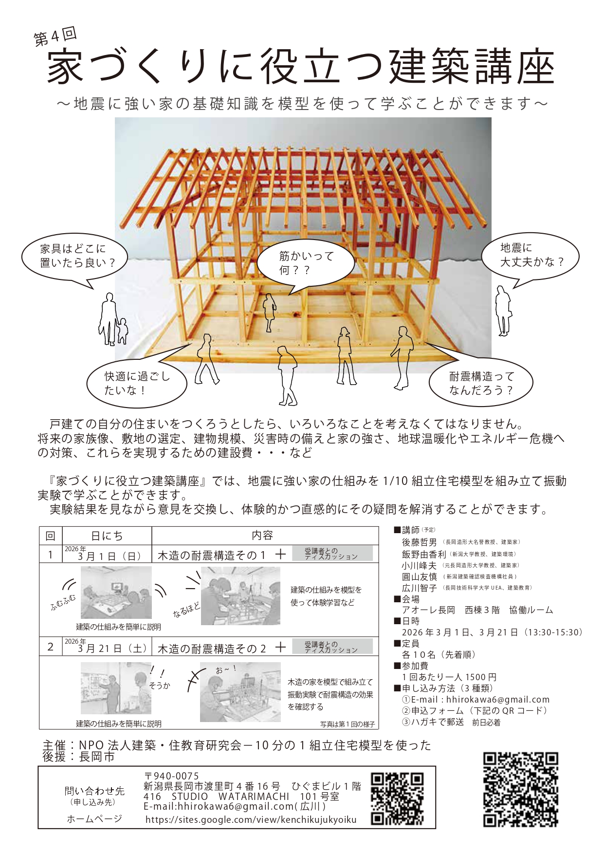 | 主催者 | NPO法人建築・住教育研究会-10分の1組立住宅模型を使った |