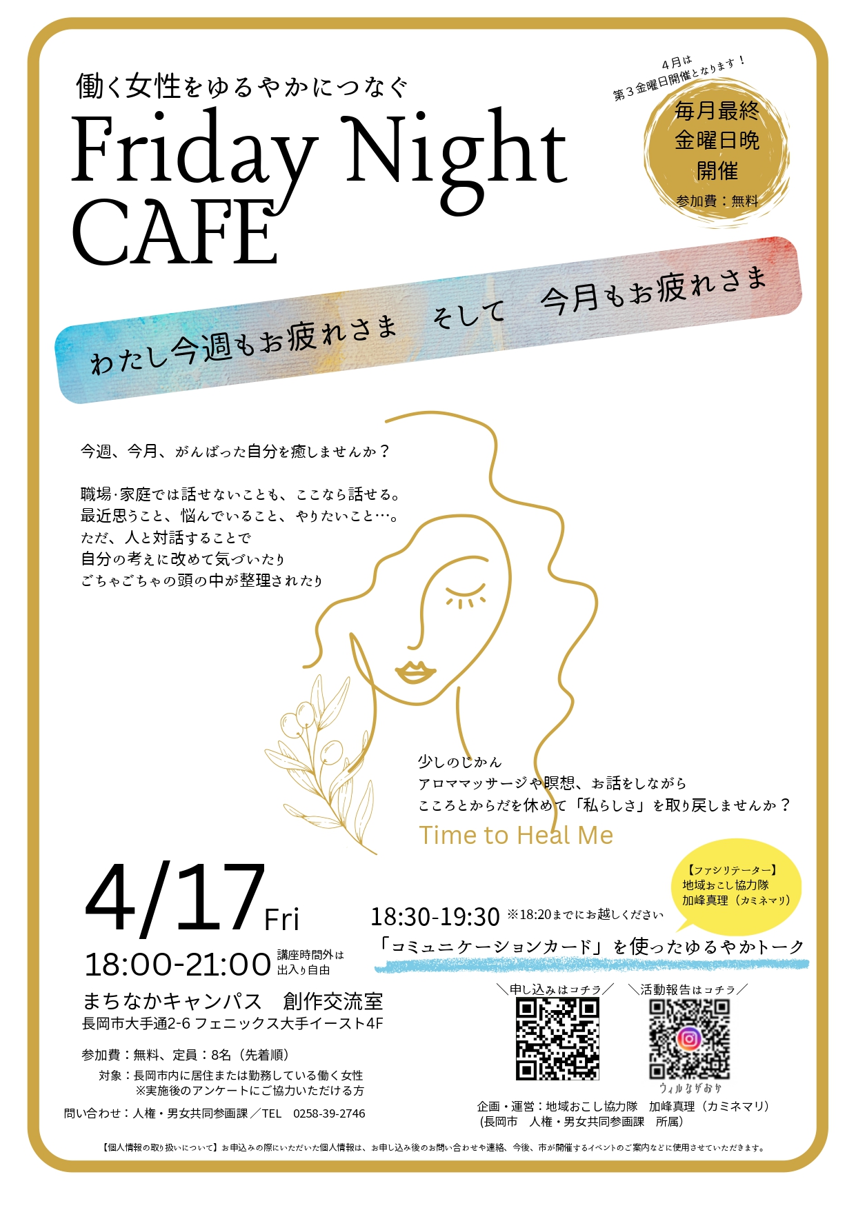 | 主催者 | 長岡市 人権・男女共同参画課 (担当:加峰) |