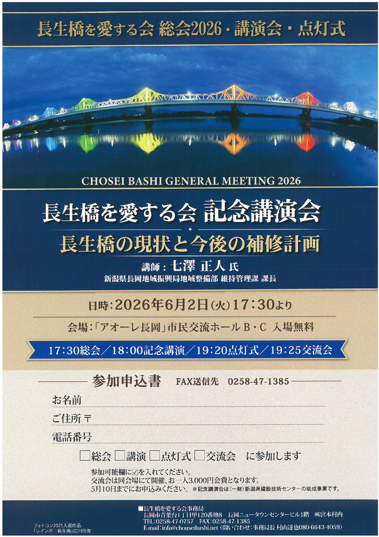 | 内容 | 長生橋を愛する会総会2026・講演会・点灯式 |