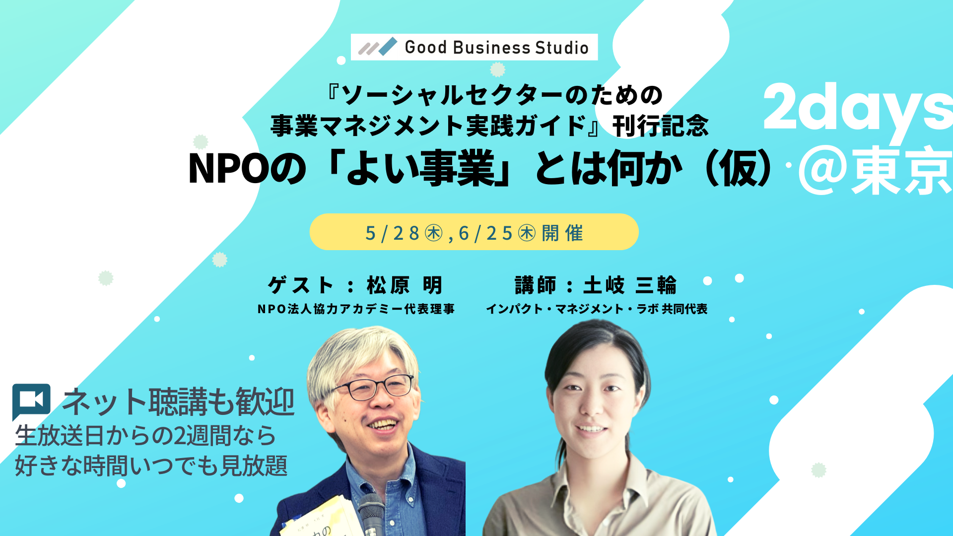 | 内容 | 【全2回のプログラム内容】 土岐三輪さんの新著『ソーシャルセクターのための事業マネジメント実践ガイド』(一般社団法人インパクト・マネジメント・ラボ共著)が、2026年5月3日に英治出版から刊行されます。 NPOにおいて、「よい事業」とは何か。 |