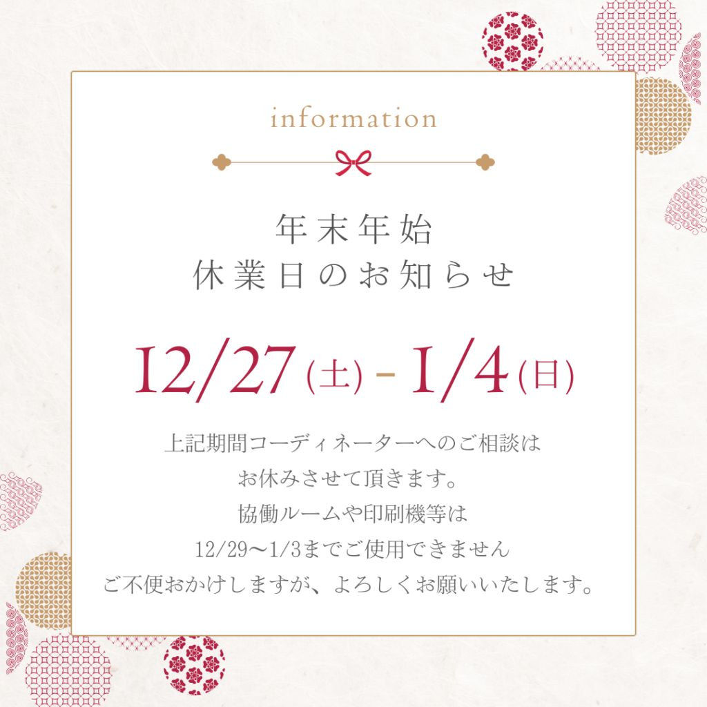 なお、コーディネーターへのご相談は12月27日(土)から2026年1月4日(日)までお休みとなります。