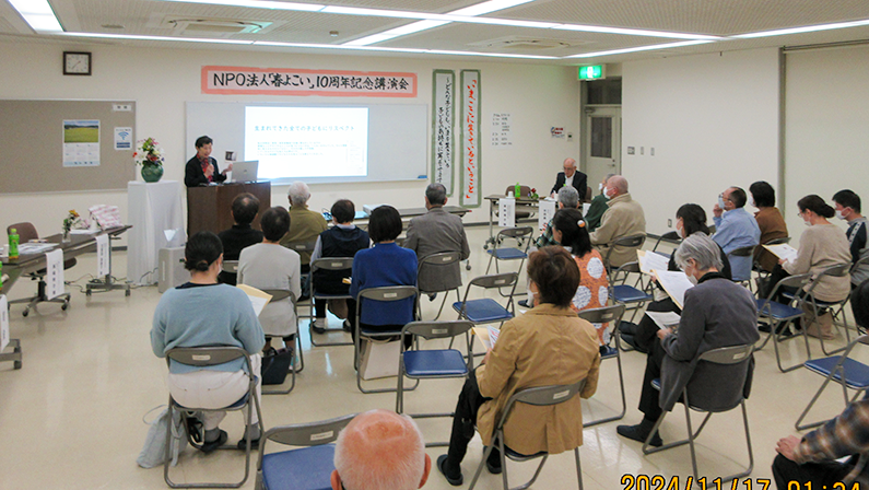 ◯NPO法人春よこいは、地域の子育て支援や高齢者福祉に取り組む中で10周年を迎え、その節目を記念して講演会を開催しました。活動の目的や背景を改めて共有し、地域の福祉に関わる方々とともに、今後の展望を考えるきっかけとすることが事業の狙いです。 |