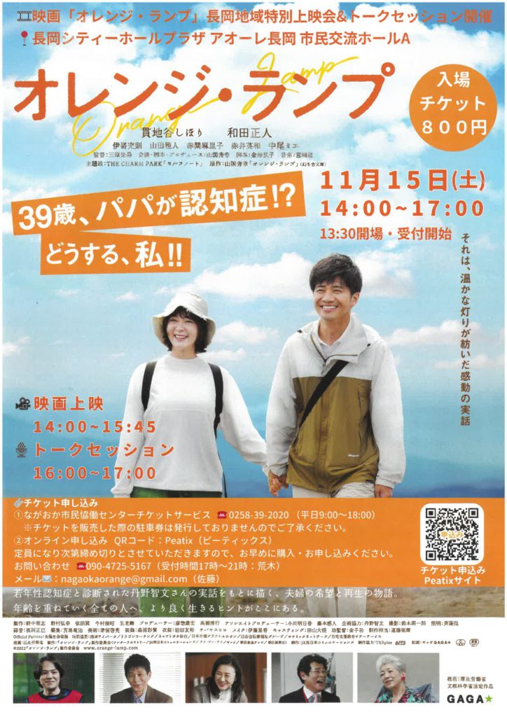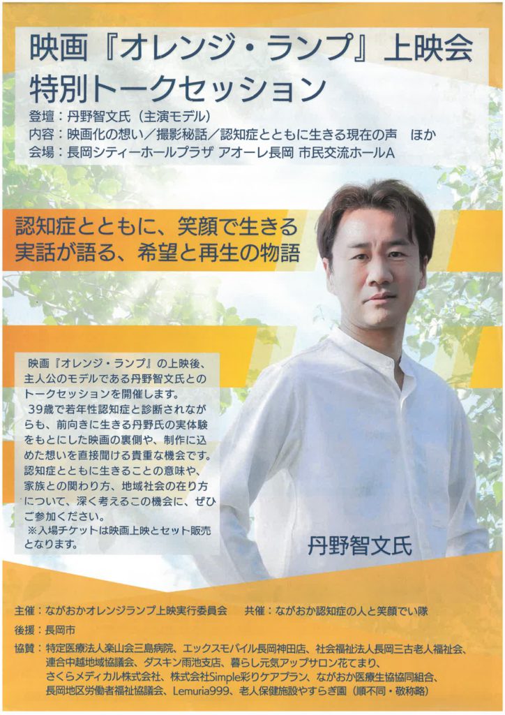 | 主催者 | 主催:ながおかオレンジランプ上映実行委員会 共催:ながおか認知症の人と笑顔でい隊 |