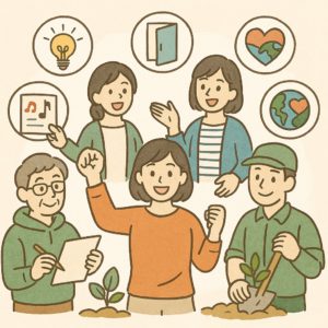 ボランティア、地域のイベント、環境保全や文化活動など、形はさまざまですが、どれも身の回りの困りごとを自分たちで工夫しながら解決していこう、という営みです。