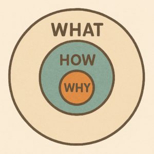 リーダーシップや組織論を探求する著述家サイモン・シネックは「ゴールデンサークル」という思考法を提唱しました。