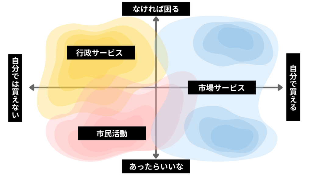 わかりやすいのは行政サービスと市場サービスの違いです。